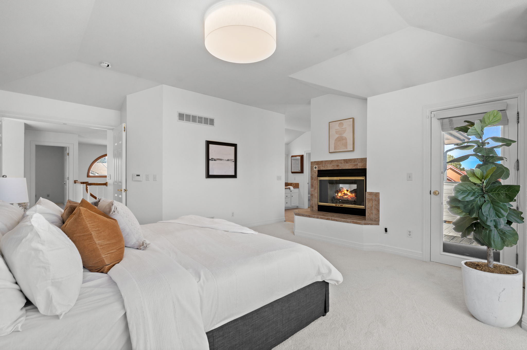 A fireplace, spa bath, and private deck create a peaceful escape.